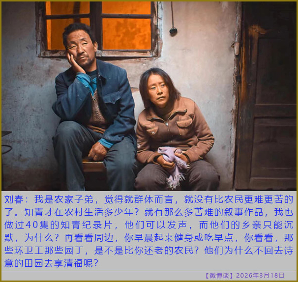 [微博谈 2026/03/18] 他们为什么不回去诗意的田园去享清福呢?